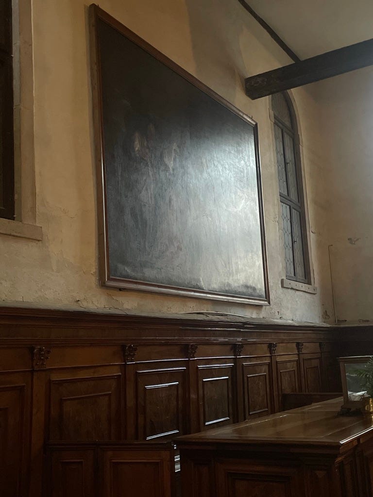 But when I was there, the setting sun lit up the canvas from the clear west windows of the church in a way that not only stopped me in my tracks at the time - worth getting my phone out for - but has stayed in my head ever since. I keep thinking about it. I’m writing this to find out why, I suppose.